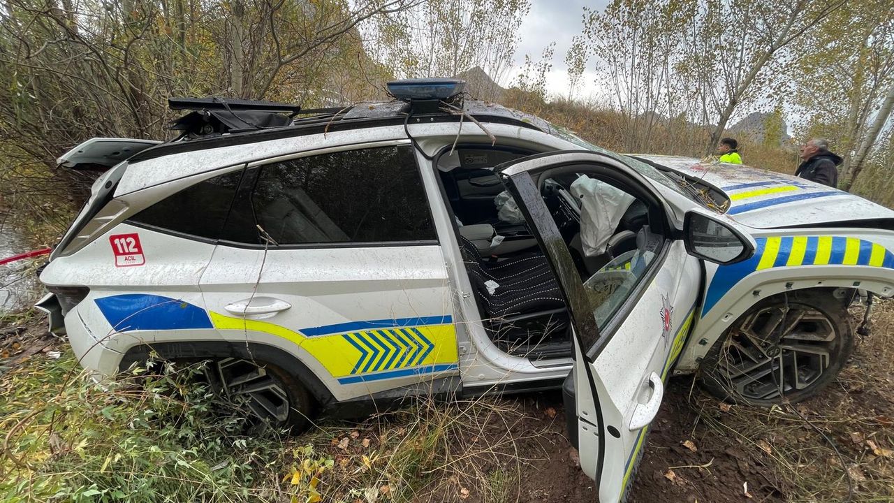 Erzincan İl Emniyet Müdürlüğü Tercan Bölge Trafik Denetleme İstasyonu Amirliğine bağlı ekip aracı, Tercan ilçesi çıkışında yoldan çıkarak takla attı.