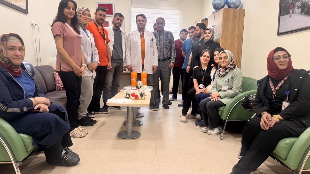 Diyaliz Ünitesi Sorumlusu Dr. Fatih Aras ile ünitede görevli doktor ve hasta yakınları, "Hemşireler Haftası" dolayısıyla ünitede görevli çalışanlar için pastalı sürpriz yaptı.