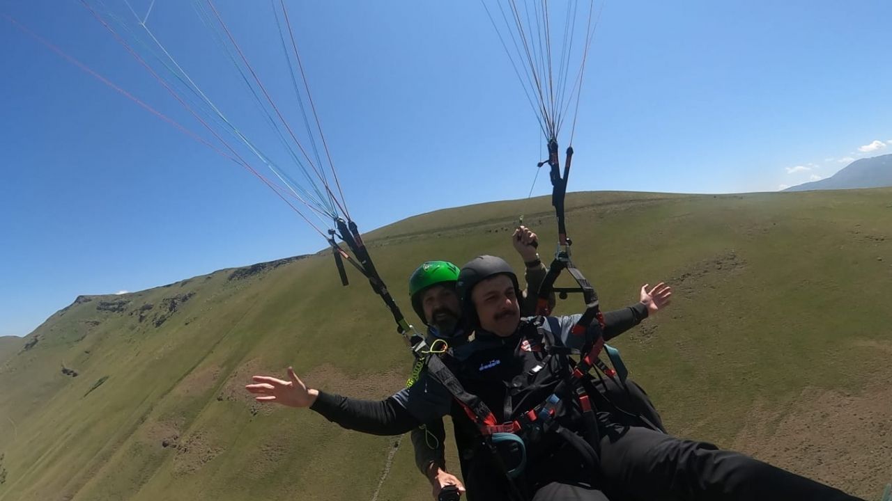 Burada yapılan hazırlık ve alınan tedbirlerin ardından Çiftçi, 2 bin 453 rakımlı bölgeden yamaç paraşütü pilotu eşliğinde uçuş yaptı.