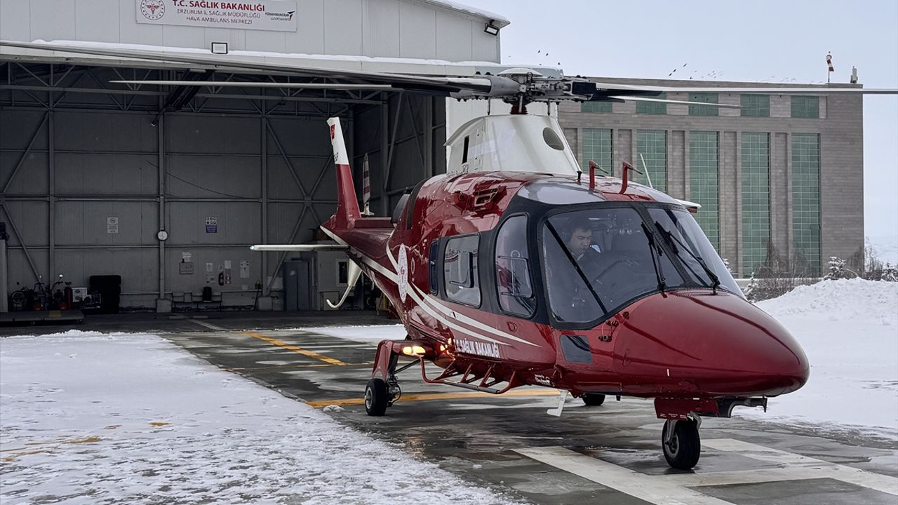 Hasta, günün aydınlandığı ilk saatlerde bölgeye gönderilen ambulans helikopterle Erzurum'a getirildi.