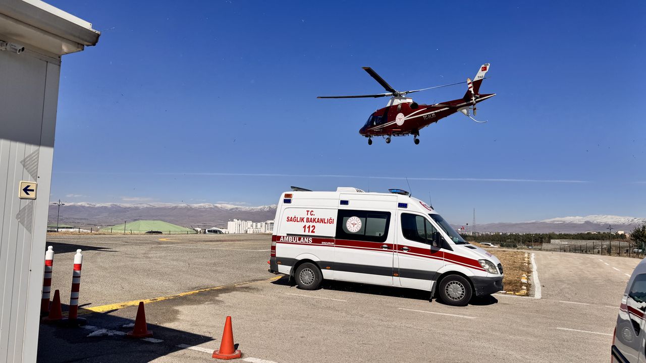 Sağlık ekiplerince helikopterden alınarak ambulansa konulan hasta, Atatürk Üniversitesi Araştırma Hastanesine kaldırıldı.