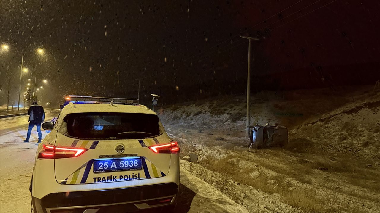ERZURUM (AA) - Erzurum'da kar yağışı nedeniyle kayganlaşan yoldan çıkan otomobilin devrilmesiyle sürücüsü yaralandı.