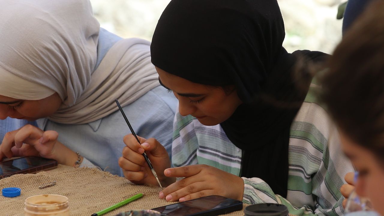 ERZURUM (AA) - Erzurum'da öğrenim gören Filistinli öğrenciler, Kültür Yolu Festivali kapsamında Erzurum Kalesi önündeki atölyelerde çeşitli sanatsal etkinliklere katıldı.