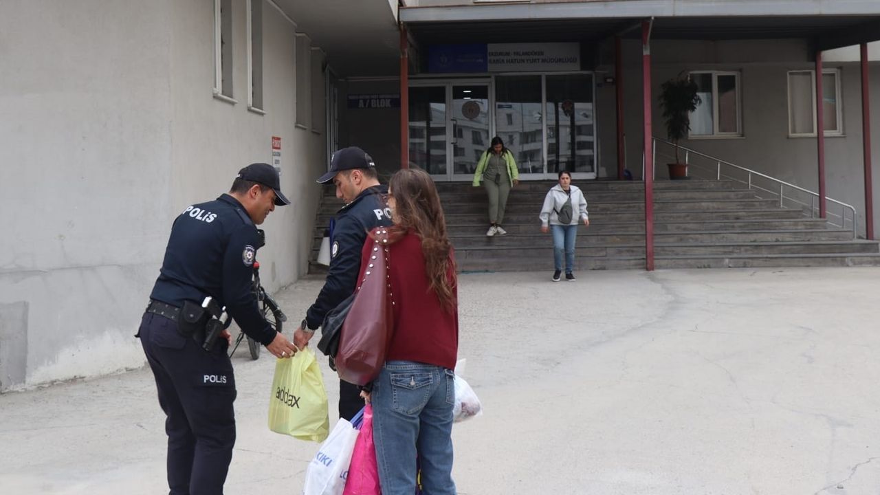 ERZURUM (AA) - Erzurum'da polis ekipleri, yurtlar arasında taşınan üniversite öğrencisinin eşyalarını aracıyla taşıyarak yardımcı oldu.