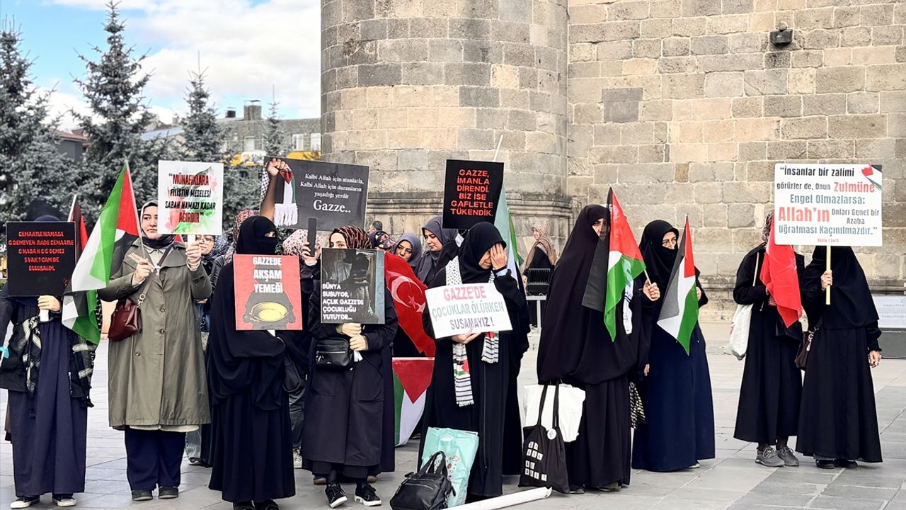 Kent merkezindeki Lala Paşa Camisi önünde bir araya gelen sağlık çalışanları ve vatandaşlar, Türk ve Filistin bayrakları eşliğinde taşıdıkları döviz ve pankartlarla Yakutiye Medresesi'ne yürüdü.