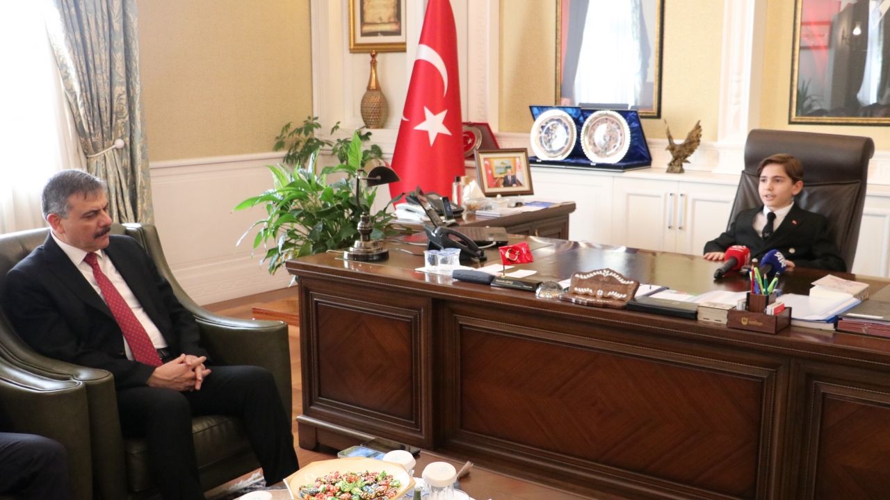 Vali Çiftçi, 23 Nisan kutlamaları kapsamında makam koltuğunu, Palandöken ilçesindeki Şehit Murat Ellik İlkokulu 4. sınıf öğrencisi Mert Karabulut'a devretti.