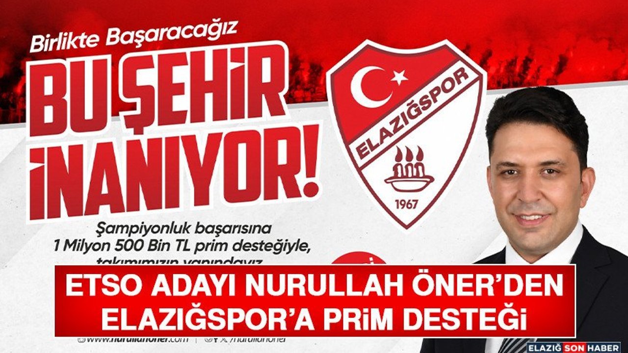 Elazığ Ticaret ve Sanayi Odası başkan adayı Nurullah Öner, şehrin en önemli marka değerlerinden biri olan Elazığspor’a destek açıklamasında bulundu.