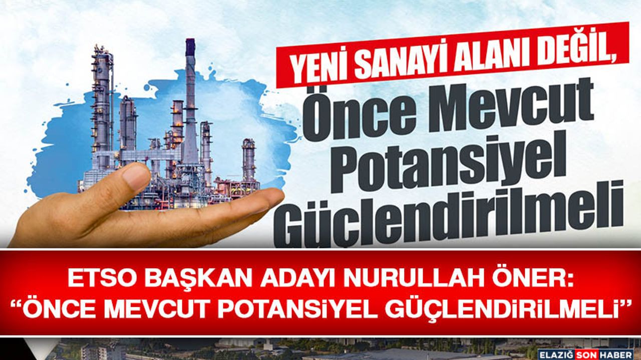 Elazığ Ticaret ve Sanayi Odası Başkan Adayı Nurullah Öner, Sanayi ve Teknoloji Bakanlığı’nın açıkladığı yeni yatırım alanları sürecine ilişkin değerlendirmelerde bulunarak, tartışmaların siyasete sıkıştığını, asıl önceliğin mevcut sanayi altyapısının verimli, sürdürülebilir ve işlevsel hale getirilmesi olduğunu söyledi.