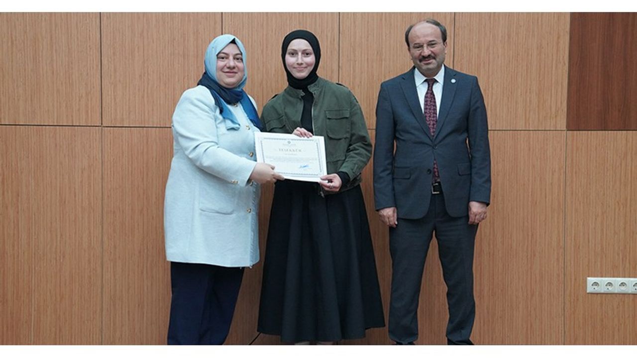 Öğrenci ve danışmanların teşekkür belgelerini alması ve hatıra fotoğrafı çekilmesiyle sona eren törene, Rektör Yardımcıları Prof. Dr. Ceren Sultan Elmalı, Prof. Dr. Naim Ürkmez, dekanlar ve akademisyenler katıldı.