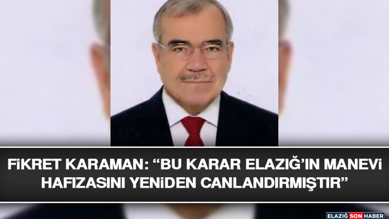 Emekli Diyanet İşleri Başkan Yardımcısı ve İlahiyat Dekanı Fikret Karaman, 17 Ocak 2026 tarihinde alınan kararın şehir açısından son derece isabetli olduğunu belirterek bir basın açıklaması yaptı.