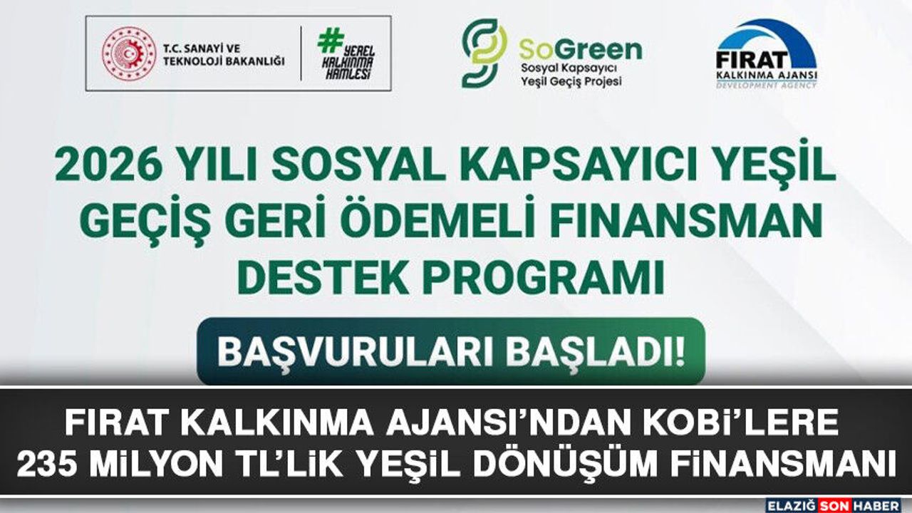 Malatya, Elazığ, Bingöl ve Tunceli illerini kapsayan TRB1 Bölgesi’nde faaliyet gösteren KOBİ’lere yönelik hazırlanan programla, işletmelerin yeşil dönüşüm odaklı yatırım ve uygulamalarının desteklenmesi hedefleniyor. Program kapsamında, Türkiye Sosyal Kapsayıcı Yeşil Geçiş (SoGreen) Projesi öncelikleri doğrultusunda faizsiz geri ödemeli finansman sağlanacak. Programın, işletmelerin çevresel sürdürülebilirlik kapasitesini güçlendirmesi, rekabetçiliğini artırması ve bölgede kapsayıcı kalkınmaya katkı sunması bekleniyor.