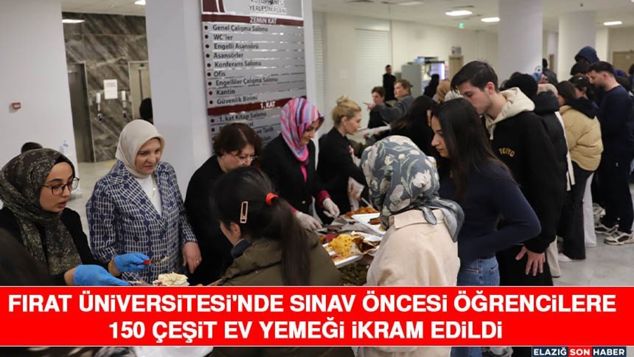 Elazığ'da FÜ Öğrenci Destek Birimi tarafından geleneksel hale getirilen etkinlik bu yıl da gerçekleştirildi. Vize haftasında kütüphanede düzenlenen etkinlikte kadın akademisyenler ve akademisyen eşleri evlerinde hazırladıkları 150 çeşit yemek, pasta ve böreği öğrencilerle paylaştı.