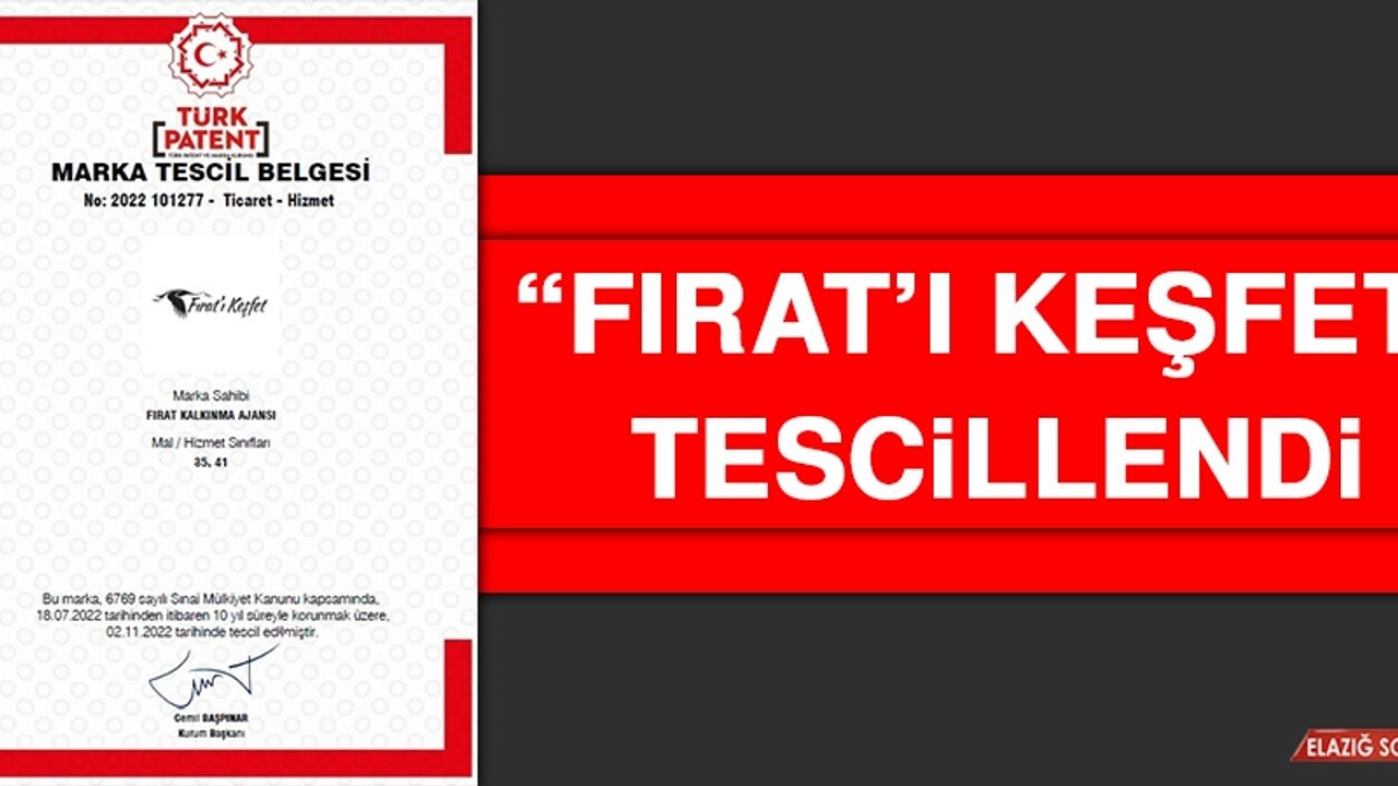 Sanayi ve Teknoloji Bakanlığı Kalkınma Ajansları Genel Müdürlüğü koordinasyonunda faaliyet gösteren Fırat Kalkınma Ajansı (FKA) tarafından yapılan başvuru neticesinde TRB1 Bölgesinin (Malatya, Elazığ, Bingöl, Tunceli) turizm potansiyelini artırmak amacıyla yürütülen "Fırat'ı Keşfet" Markalaşma Projesi, Türk Patent ve Marka Kurumu tarafından onaylanarak Marka Tescil Belgesi almaya hak kazandı.