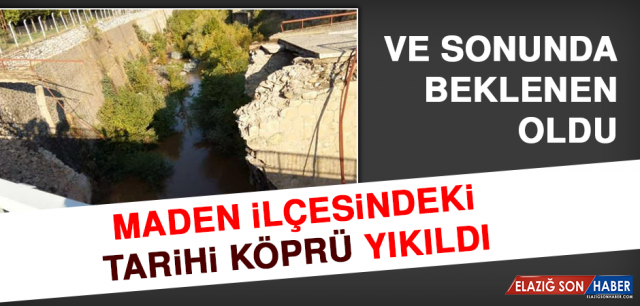 30 Ekim tarihinde ise Heyelan riski altına olan Maden’de tarihi köprü, aldığı hasarlara daha fazla dayanamadı ve çöktü.
