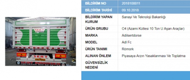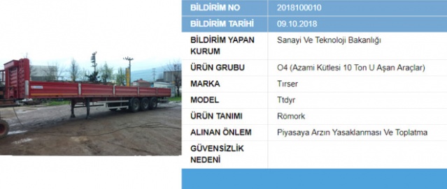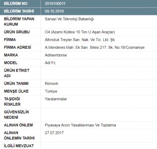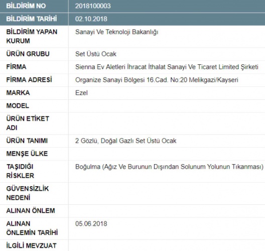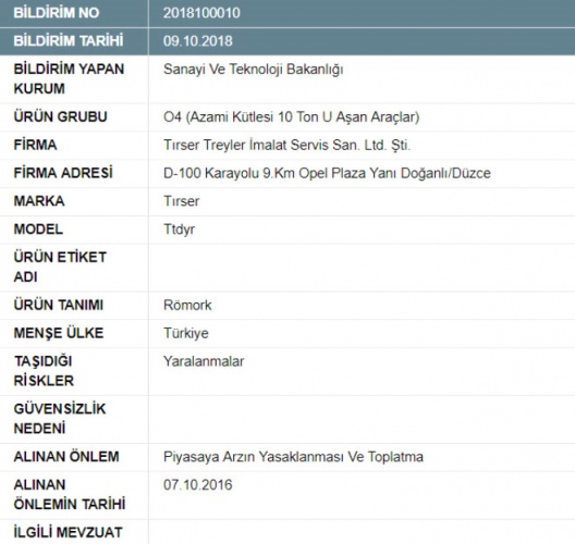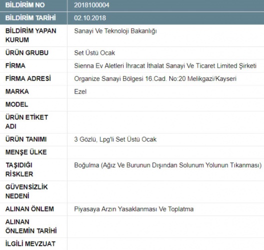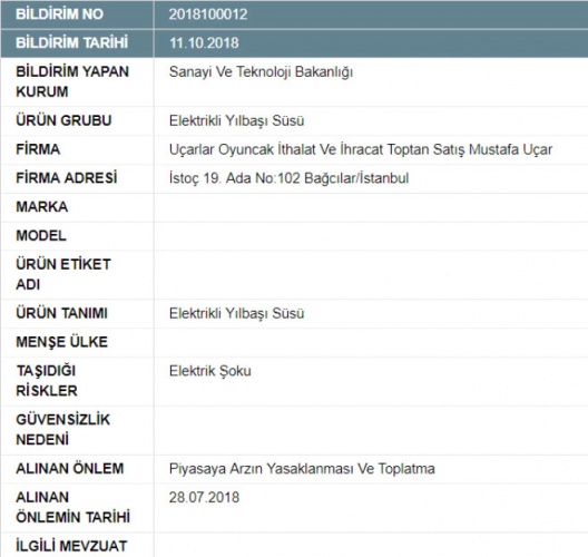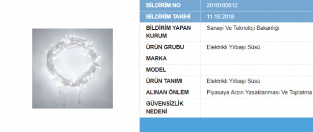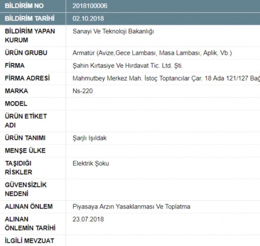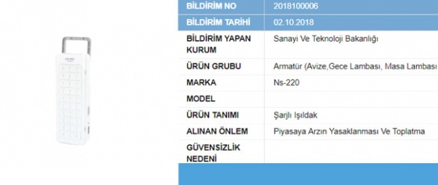 Türkiye'de piyasa gözetimi ve denetimi sonucunda tüketicilerin sağlık ve güvenliklerini tehdit ettiği belirlenen ürünlerin, Güvensiz Ürün Bilgi Sistemi üzerinden kamuoyuna duyurulmasına başlandı. Sistem kapsamında oluşturulan internet sitesi "www.guvensizurun.gov.tr"ye yüklenen en son 8 ürün ise şöyle...