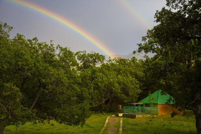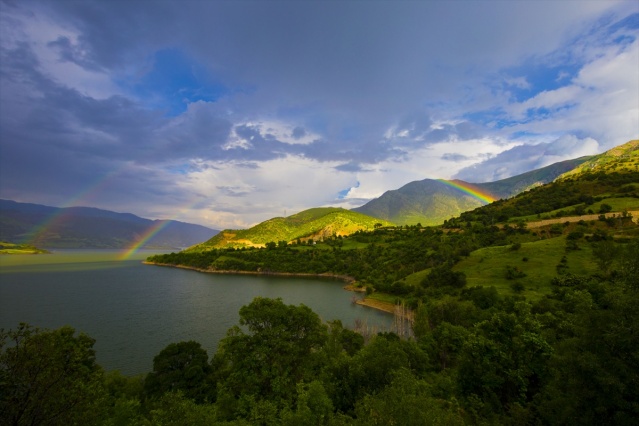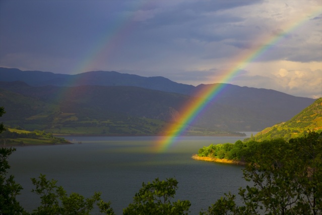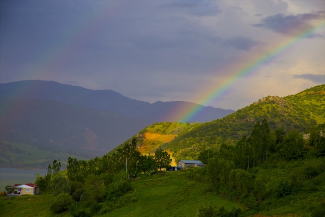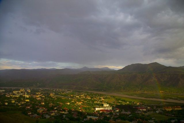 Elazığ'ın tarihi ve doğal güzellikleriyle öne çıkan ilçesi Palu'da ilkbahar yağmurlarının ardından ortaya çıkan gökkuşağı ve ışık süzmeleri görsel şölen sundu.