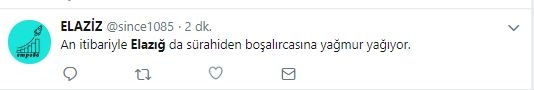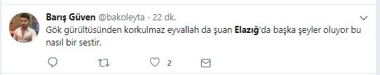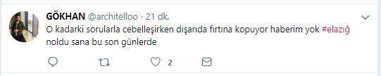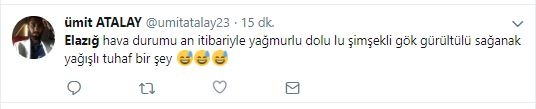 Gök gürültülü ve şimşekli hava nedeniyle Elazığlılar da sosyal medya hesaplarından işte bu paylaşımlarda bulundular...