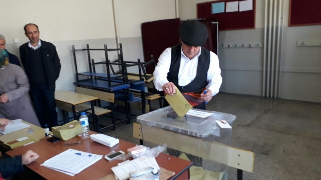 Bir Elazığlı vatandaş ise oy kullanmaya Elazığ yöresel kıyafetleriyle gitti.