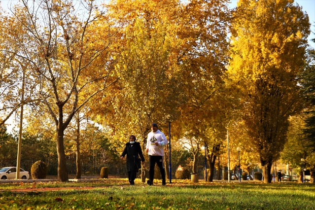 Kent merkezinin farklı noktalarında kış öncesi sararan yaprakların sonbahar esintileri görsel şölen sunuyor. Hafta sonu kısıtlamadan sonra bazı vatandaşlar ise bu doğa harikası ağaçların renk cümbüşünün altında hem yürüyüş yapıyor, hem de fotoğraf çekiyor.