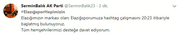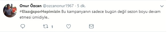 Kampanya dün saat 20.23 itibariyle sosyal medya Twitter’da “#ElazığsporHepimizin” hashtag çalışması ile başlamıştı.