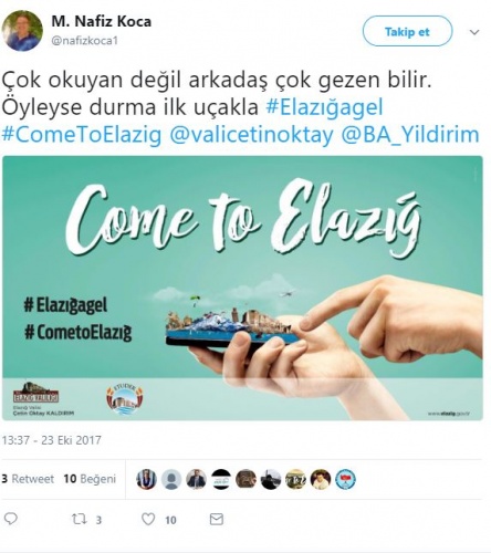 İşte #CometoElazığ kampanyası kapsamında yapılan bazı paylaşımlar...