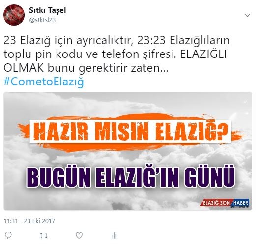 Saat 21.00’dan gece 24’e kadar sosyal medya Twitter’dan “ComeToElazığ” ve “ElazığaGel” hashtagleri atıldı...