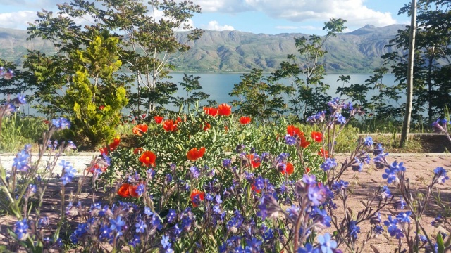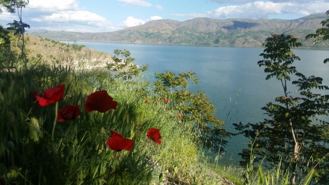 Gelinciklerle muhteşem manzaraya bürünen hazar gölü kafa dinlemek için en uygun yer.