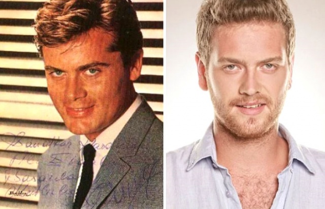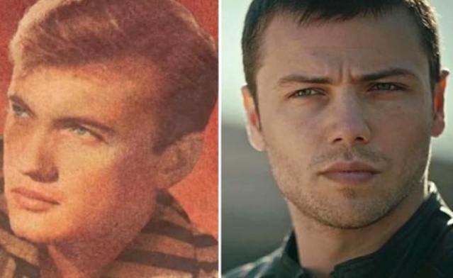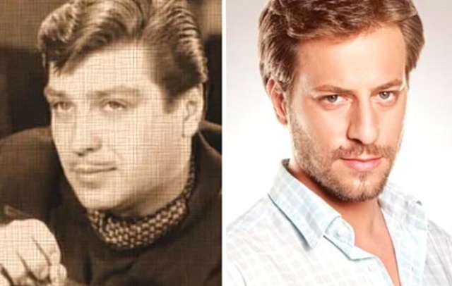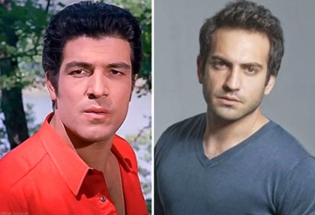 Yeşilçam'ın mavi gözlü yakışıklısı Tamer Yiğit ve şimdilerin sarışın oyuncusu Engin Öztürk'ün bakışları bile aynı.