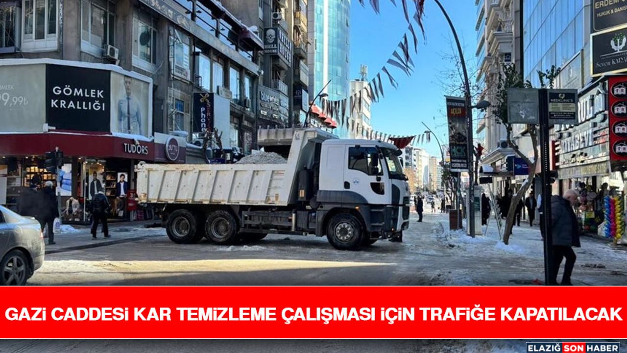 Elazığ Belediyesi kar temizleme çalışmaları kapsamında Gazi Caddesi saat 11.00 itibariyle trafiğe kapatılarak temizlenecek.