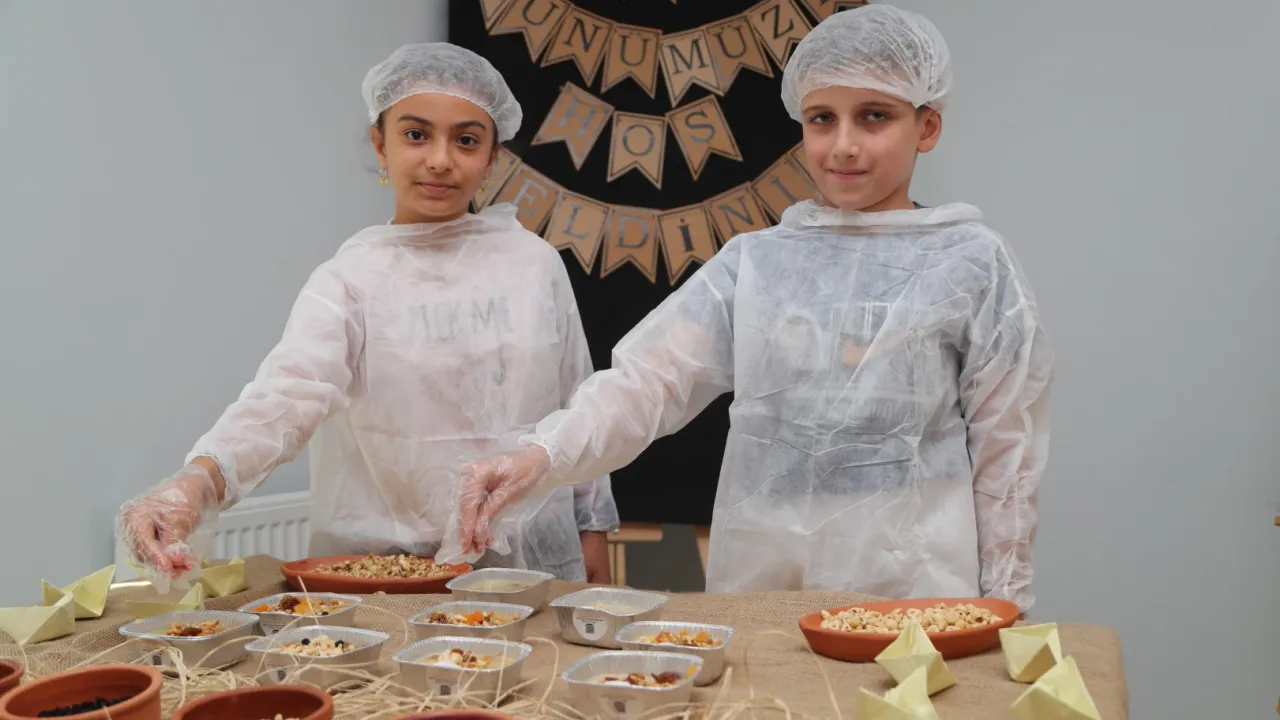 “Birlikte pişirdik, birlikte paylaştık” sloganıyla gerçekleştirilen etkinlikte, öğrenciler geleneksel aşureyi hazırlayıp önce arkadaşlarına ardından çevredeki esnafa ikram etti.