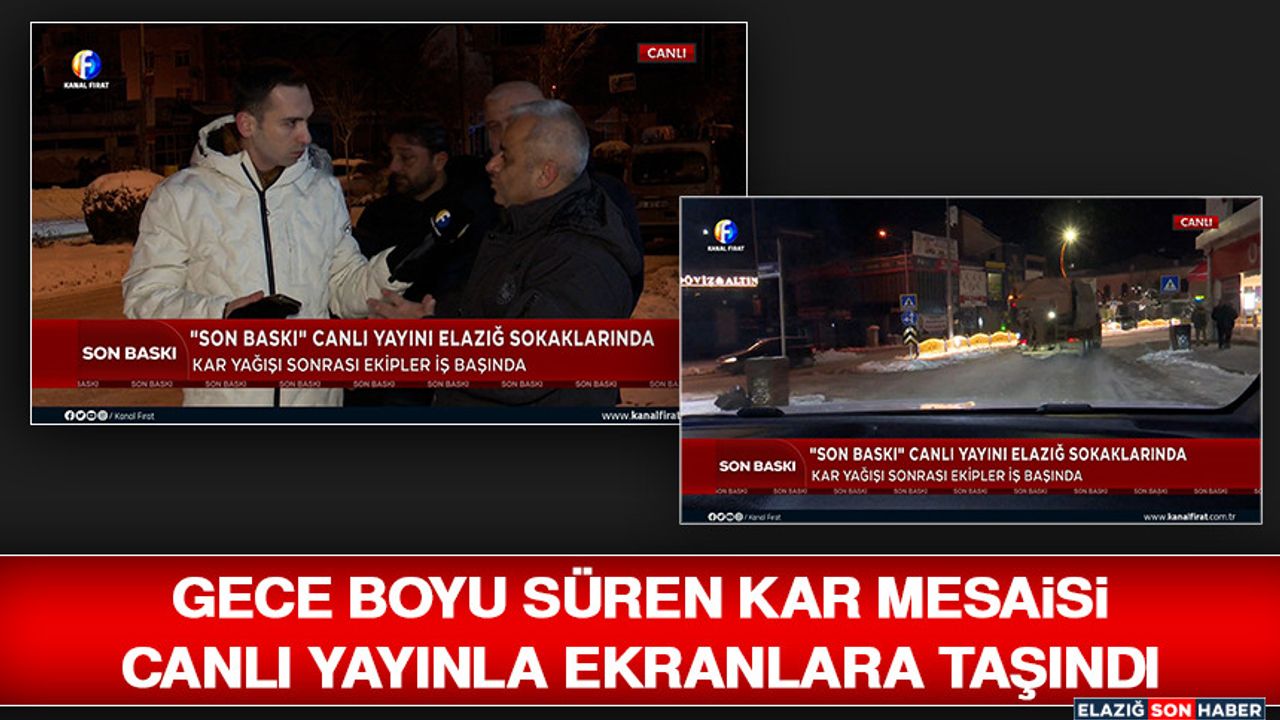 Elazığ’da etkili olan kar yağışının ardından şehir genelinde yürütülen çalışmalar, sahadan yapılan canlı bağlantılarla ekrana taşındı.