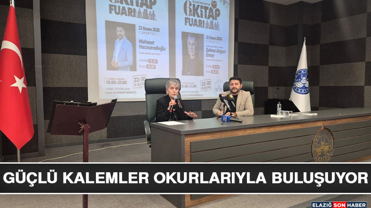 Elazığ Belediyesi Ahmet Tevfik Ozan Fuar ve Kongre Merkezi'nde, 22 Kasım’da kapılarını açan Kitap Fuarı'nda aynı zamanda birbirinden kıymetli kalemler de imza ve söyleşi programlarıyla okurlarıyla buluşuyor. Fuarın ilk gününde usta kalemler Selma Argon Ersoy, Mehmet Hacıismailoğlu, İslam Memiş, Kahraman Tazeoğlu ve Abdullah Yıldız söyleşi ve imza programlarıyla okurlarıyla bir araya geldi.