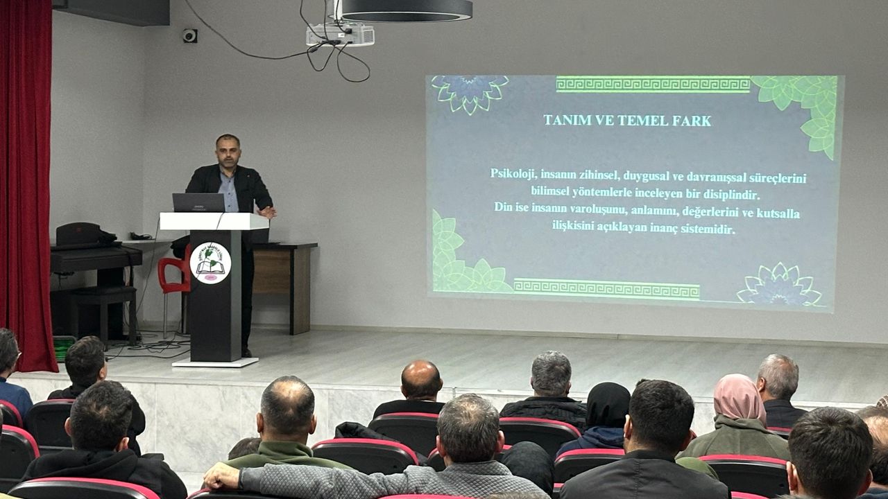 Psikoloji konulu oturumda ise Dr. Mehmet Nesim Anuştekin, din ve psikoloji ilişkisini tarihsel ve kuramsal boyutlarıyla anlattı.