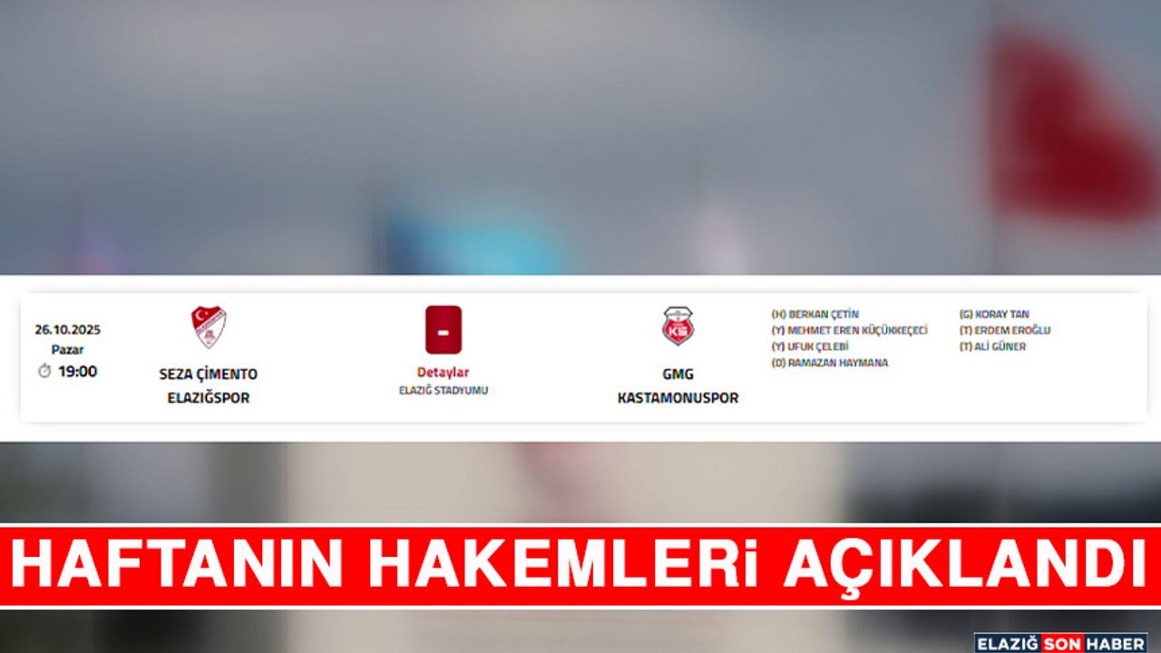 Yapılan açıklamaya göre Seza Çimento Elazığspor’un Pazar günü saat:19.00’da oynayacağı Seza Çimento Elazığspor – Kastamonuspor karşılaşmasını Antalya Bölgesi klasman hakemi Berkan Çetin yönetecek.