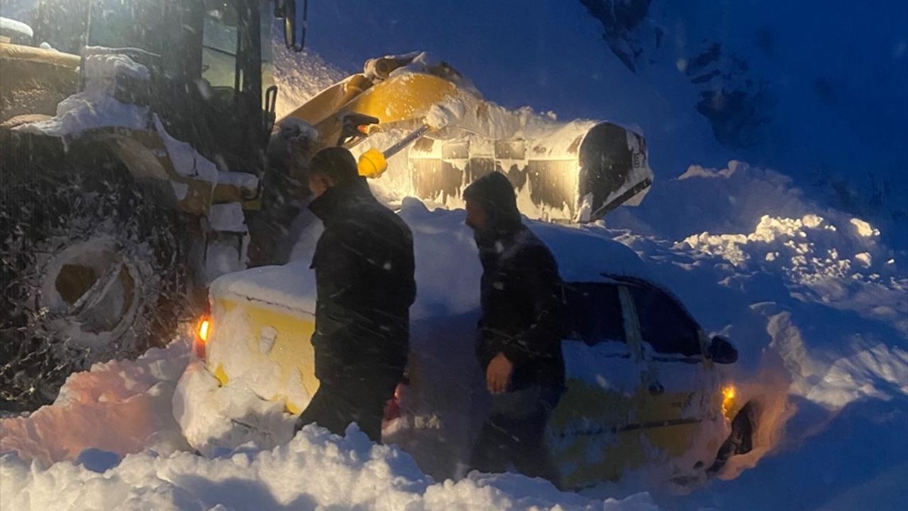 İlçenin Şaptan Geçidi yakınında seyir halinde olan taksi, yoğun kar nedeniyle düşen çığın altında kaldı.