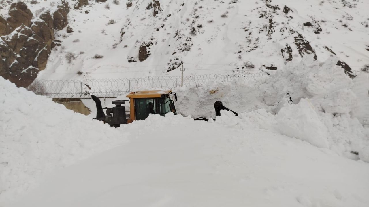Karla mücadele ekipleri, çığın düştüğü bölgedeki metrelerce kar yığınını temizleyerek yolu ulaşıma açtı.