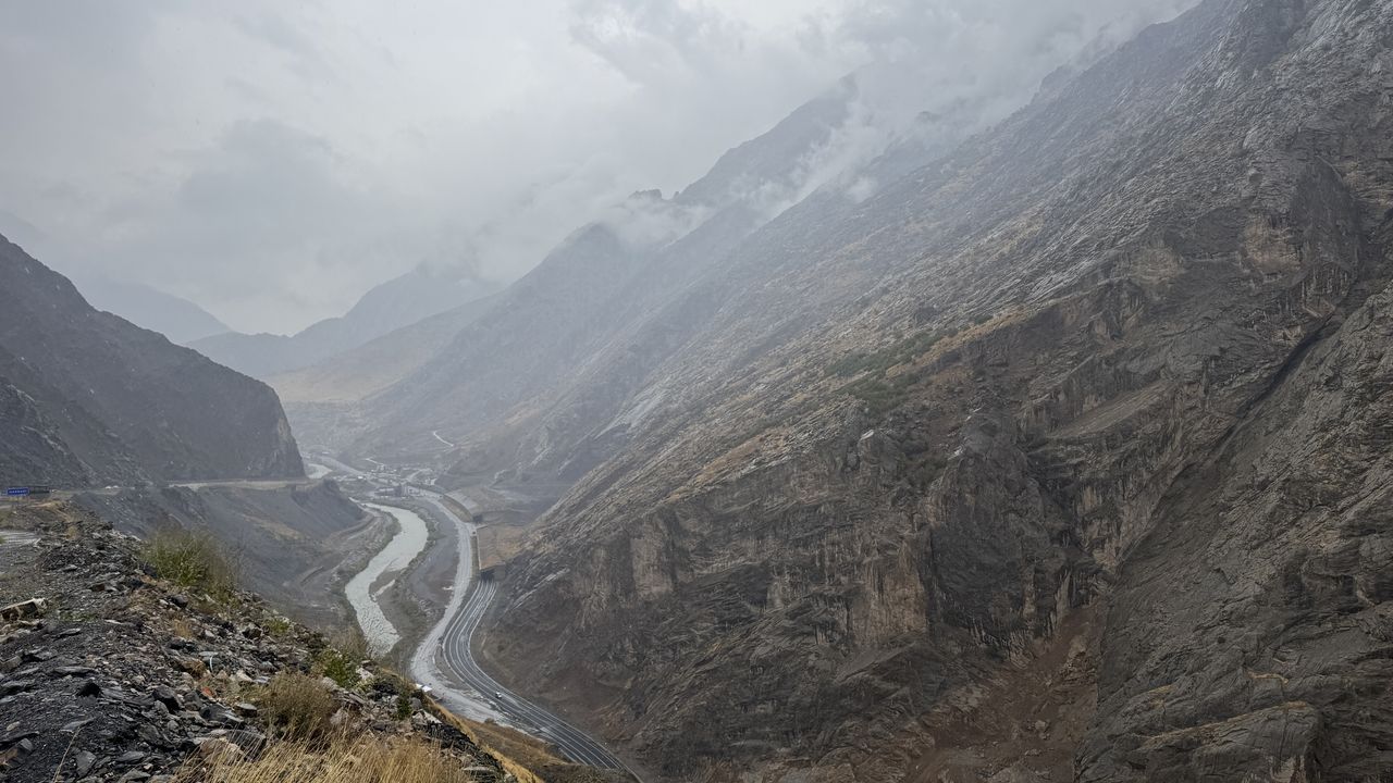 Karayolları ekipleri, yağmur suyuyla sürüklenip yolda biriken taşları iş makinesiyle temizledi.