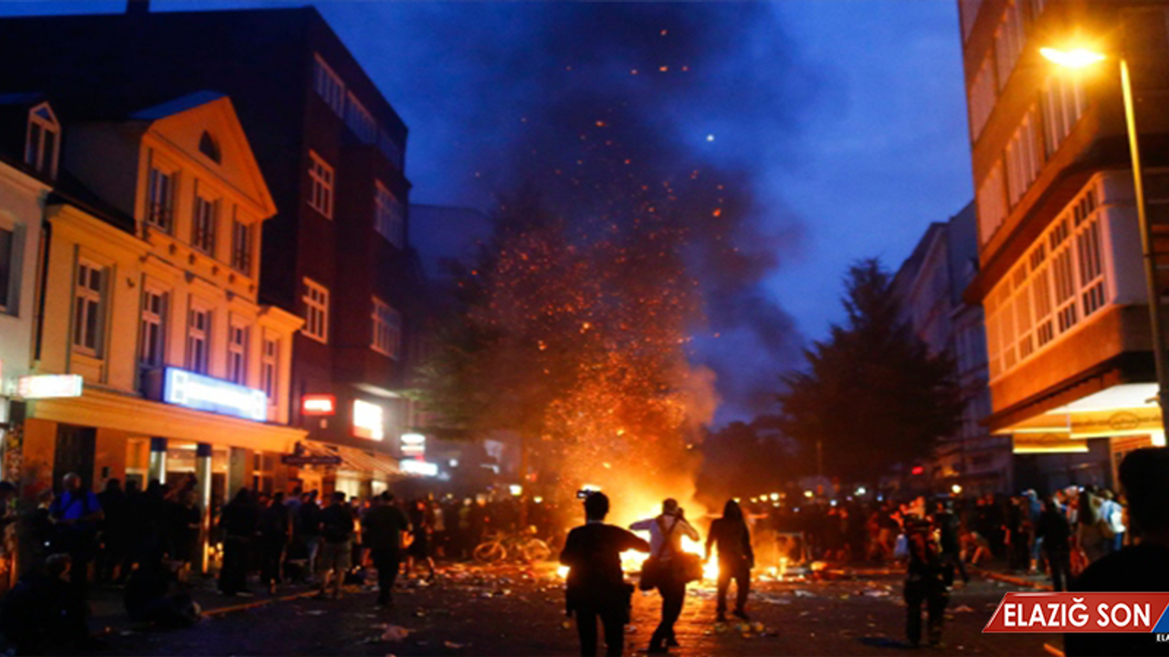 Göstericilerin kurdukları barikatları ateşe verdiği Schulterblatt Caddesi'ne tehlikenin büyüdüğü gerekçesiyle çok sayıda polisin yanı sıra ağır silahlı güvenlik birlikleri sevk edildi.