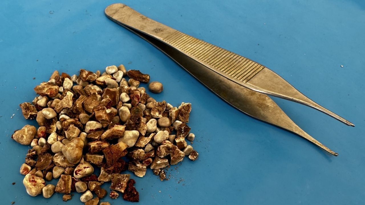 "Önce bir tarafı temizledik, çok zahmetli olacak diye esas büyük olanı sona bıraktık. Bir seansta bir tarafı temizledikten sonra araya bir süre koyduk, hasta iyileşti. İkinci seansta da 5 santimlik olan taş kısmını boşalttık. Tek tek taşları toplamak yaklaşık 4 saate yakın süren zorlu, çetin ameliyat oldu. Bu büyüklükte bir taş görüyorsak genellikle bu taşlar tek parça halinde olur. Biz onları kırarak küçültürüz. Boncuk tanesi gibi küçük yüzlerce taşı bir arada görmek bizim için de deneyim oldu."