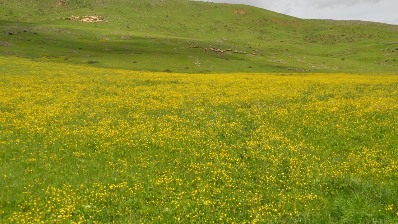 Türkiye'nin en büyük ovaları arasında yer alan Muş Ovası'nda baharın gelişiyle açan sarı ve kırmızı çiçekler görsel şölen sunuyor.