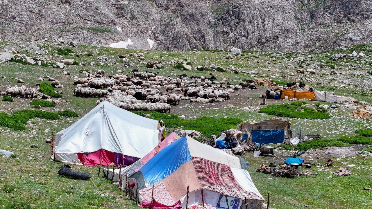 Temiz su kaynakları ve zengin otlaklarıyla öne çıkan Van-Bahçesaray kara yolundaki 2 bin 985 rakımlı Karapet bölgesi, son günlerde küçükbaş hayvan sürüleriyle şenlendi.