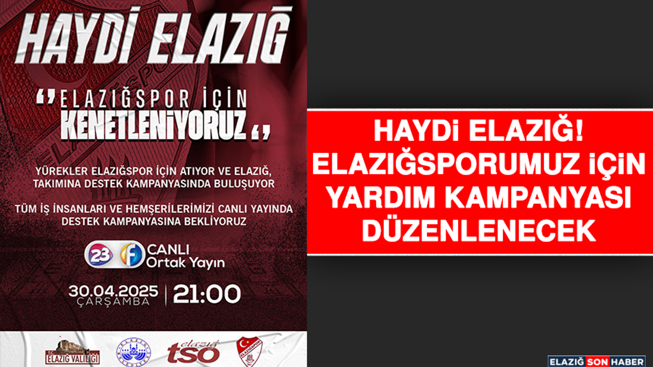 Elazığspor’umuz Nesine 2. Lig kırmızı grupta şampiyonluğa adım adım yaklaşırken, Elazığ Valisi Numan Hatipoğlu başkanlığında yardım kampanyası düzenlenecek.