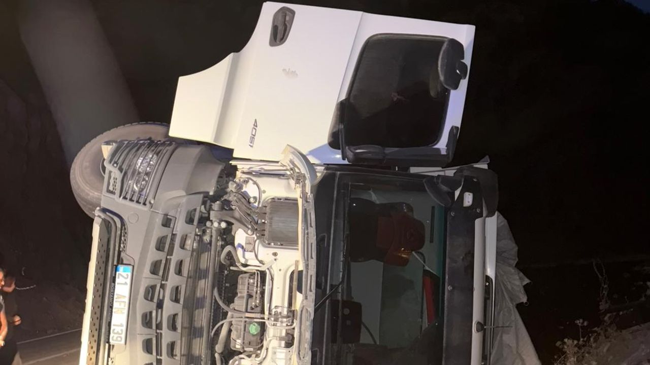 Bitlis-Hizan kara yolunun Nazar mevkisinde Ş.T idaresindeki 21 AFH 139 plakalı hafriyat kamyonu yol kenarına devrildi.