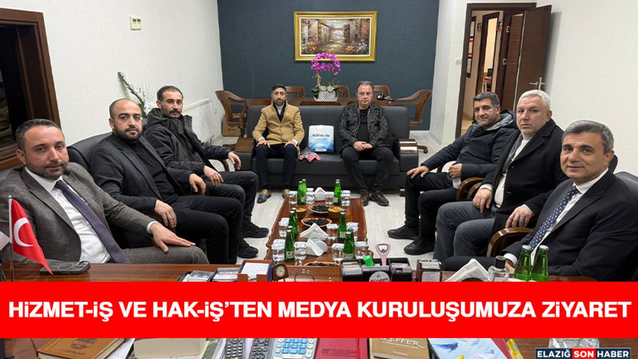 10 Ocak Çalışan Gazeteciler Günü dolayısıyla Hizmet-İş ve Hak-İş Sendikası Elazığ Şube Başkanı Gökhan Arpa ve beraberindeki heyet, medya kuruluşumuzu ziyaret etti.