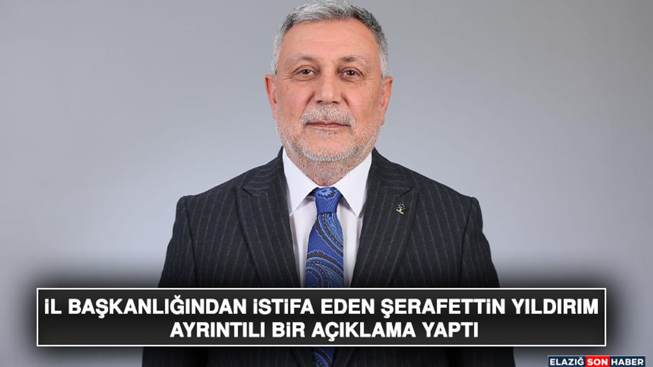 AK Parti Elazığ İl Başkanlığı görevinden istifa eden Şerafettin Yıldırım, sosyal medya hesabından yazılı bir açıklama yaptı. Şerafettin Yıldırım, paylaşımında hem siyasetteki yolculuğunu hem de ailevi süreçlerini aktararak, “6 yıl önce emanet edilen görevi bugün itibarıyla sahibine iade ediyorum” ifadelerini kullandı.