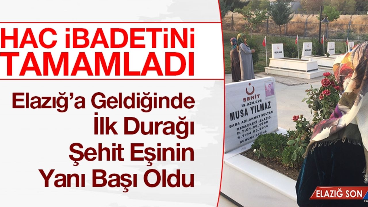 Kayıtla birlikte hacca giden ve yakınları tarafından havalimanında karşılanan şehit eşinin ilk durağı eşinin kabri oldu.