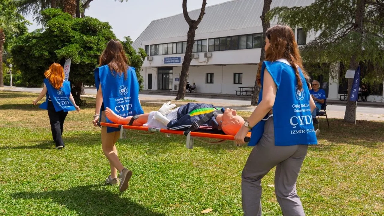 İzmir Büyükşehir Belediyesi İlk Yardım Eğitim Merkezi’nde “Afetlerde İlk Yardım Eğitimi” alan Çağdaş Yaşamı Destekleme Derneği bursiyeri öğrenciler, İlk Yardım Uygulama Turnuvasına katılarak aldıkları eğitimi pratiğe dönüştürdü.İZMİR (İGFA) - İzmir Büyükşehir Belediyesi ve Çağdaş Yaşamı Destekleme Derneği iş birliği ile dernekten burs alan öğrencilere yönelik İzmir Büyükşehir Belediyesi İlk Yardım Eğitim Merkezi’nde “Afetlerde İlk Yardım Eğitimi” verildi. Teorik eğitimlerin ardından Kültürpark’ta “İlk Yardım Uygulama Turnuvası” düzenlendi. Gruplar halinde en iyi müdahaleyi yapmak için mücadele eden öğrenciler, adeta zamanla yarıştı. Senaryo gereği, sıkışmalı trafik kazasından yaralı kurtarma, kalp masajı yapma, 112’yi arayarak bilgilendirme gibi çeşitli ilk yardım müdahaleleri yapıldı. Turnuvaya beş ekip olmak üzere 18 kişiden oluşan bursiyer öğrenciler katıldı.