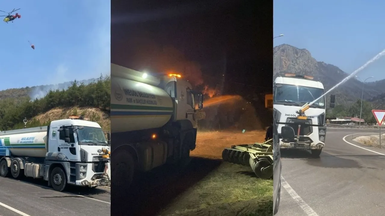 Bursa İnegöl Belediyesi, Bilecik bölgesinde çıkan orman yangınlarına müdahale çalışmalarına destek olmak amacıyla harekete geçti. Yangınların kontrol altına alınması için yürütülen çalışmalara katkı sunmak üzere belediyeye ait su tankeri ile personel bölgeye sevk edildi.BURSA (İGFA) - Bursa İnegöl Belediye Başkanı Alper Taban’ın talimatıyla hızla organize olan İnegöl Belediyesi ekipleri, yangın bölgesine yönlendirilerek yangın söndürme faaliyetlerine katıldı. Belediyeye ait su tankeri, özellikle ulaşılması zor noktalarda Orman Genel Müdürlüğü ekiplerine destek veriyor. Su taşıma ve soğutma faaliyetlerinde görev alan İnegöl Belediyesi ekipleri, koordineli bir şekilde çalışmalara katkı sunuyor.