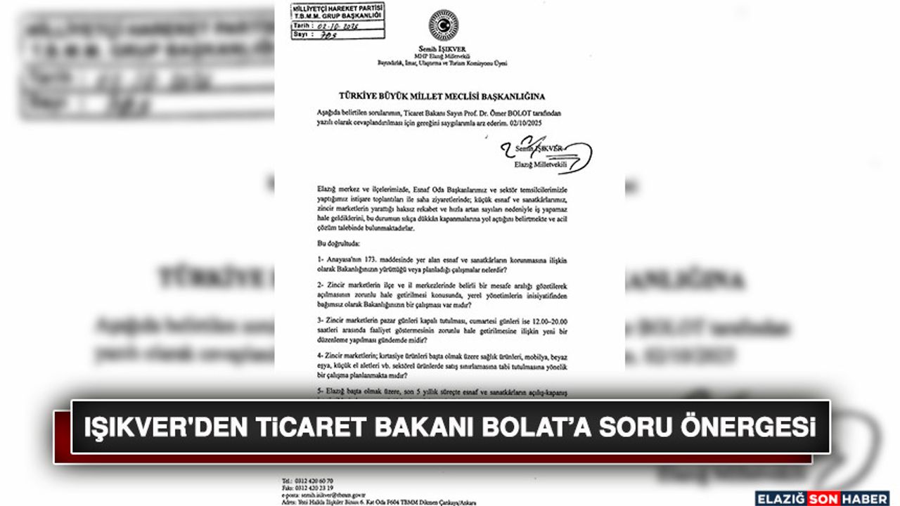 Milletvekili Semih Işıkver, yapılmış ve planlanan çalışmaları öğrenmek üzere, Ticaret Bakanı Ömer Bolat’ın cevaplaması talebiyle Türkiye Büyük Millet Meclisi Başkanlığı'na bir soru önergesi sundu.