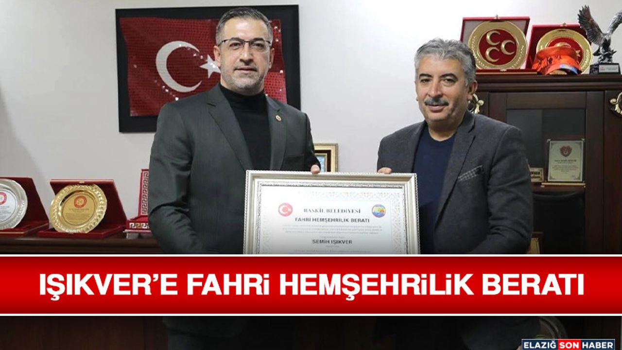 Fahri hemşehrilik beratını Baskil Belediye Başkanı Tuncer Turus’un elinden alan Işıkver yaptığı değerlendirmede, "Bugün hakikaten bizleri çok mutlu eden bir hediye aldık. Can Baskilimizin çok kıymetli Belediye Meclis Üyeleri bizleri fahri Baskilli ilan etme kararı almışlar. Her birine Sayın Başkanımız şahsında ayrı ayrı teşekkürlerimi ve şükranlarımı sunuyorum. Baskil ilçemizin biz çok yüksek bir potansiyeli olduğunu görüyoruz. Bu potansiyelin hem ilçe hem de ilimiz ekonomisine değer katması için Sayın Belediye Başkanımız ve Baskilimizin çok kıymetli STK’ları ve hemşehrilerimizin desteği ile çok değerli girişimlerde bulunduk. Turizm anlamında çok önemli bir değer olan Karaleylek ve Kaplıkaya kanyonlarının mutlak suretle altyapılarının tamamlanarak turizme kazandırılması gerekiyor. Yine bölgenin tahıl ambarı olan Baskil ilçemizin sulama problemi var. Altunuşağı köyünde 2016 yılında tamamlanan ancak yüksek enerji maliyeti nedeniyle çalıştırılamayan sulama projesi için bir GES kuruması hususunda çok önemli girişimlerimiz oldu. Baskil yolu ve Baskil sahil yolu ile de yine Sayın Belediye Başkanımızın talepleriyle ilgili bakanlıklar düzeyinde taleplerimiz ve girişimlerimiz söz konusu. Dünyanın en lezzetli kayısısı olduğuna inandığımız Baskil Kayısısının bu isimle tescili noktasında da girişimlerimiz devam ediyor. Tüm bu parçaları birleştirdiğimizde temel hedefimiz ise Baskil Gıda OSB’nin kurulması. Böylelikle hem bölgesel hem de il ekonomisi ve istihdamı acısından tarihi bir süreç başlamış olacak ve bu proje ile Baskil ilçemiz için yeni bir dönem başlayacak. İlçemiz için bir gelecek vizyonu oluşturma gayreti ile yoğun bir mücadele veriyoruz. Bizlere bu süreçte çok büyük bir destek veren Sayın Başkanımıza ve tüm Baskilli hemşehrilerime teşekkür ediyor, en kalbi muhabbetlerimle selamlarımı sunuyorum” dedi.